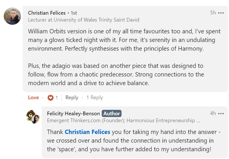 The answer to the question above I considered may have been best answered with a more sensory share of my need to commit to harmony, the SDGs and weighty planetary matters… that argument be more powerfully illuminated in ways where my words fail.