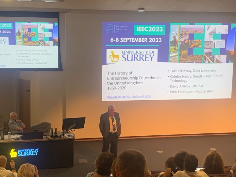 Finally, I’m delighted to report that my HES co-founder and IICED Professor of Practice, Professor David Kirby and Emeritus Professor John Thompson delivered a conference keynote. Representing co-authors Professor Colette Henry and Dr Luke Pittaway, they discussed their recent publication, ‘The History of Entrepreneurship Education in the United Kingdom, 1860-2020’. They shared their extensive knowledge and experience of the Enterprise Education landscape, with a significant emphasis on ‘Harmonious Entrepreneurship’ as a fifth typification in the ever-evolving entrepreneurship landscape.