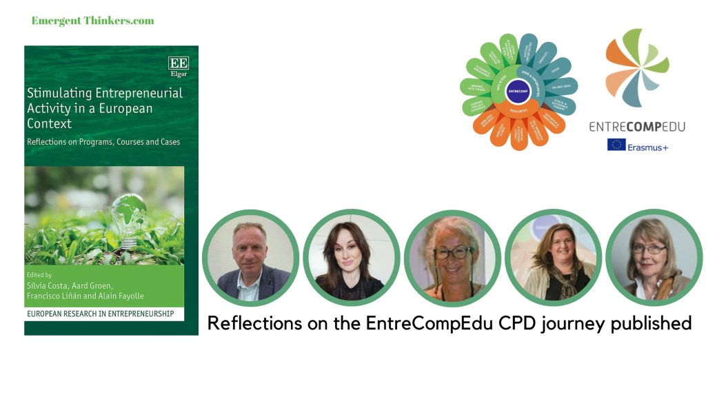 I am thrilled to announce the publication of a new chapter titled ‘Reflecting on the potential of EntreCompEdu to stimulate teachers’ entrepreneurial thinking and activities’. This work, co-authored by an international team, Dr Russell Grigg, myself, Hazel Israel, Elin McCallum, and Lea Oksanen, is part of the new book Stimulating Entrepreneurial Activity in a European Context: Reflections on Programmes, Courses, and Cases edited by Sílvia Costa, Aard Groen, Francisco Liñán, and Alain Fayolle. The book is published in the European Research in Entrepreneurship series by Edward Elgar Publishing.