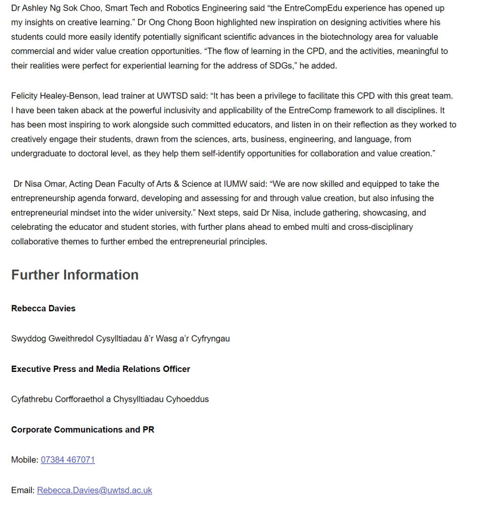 Archived UWTSD comms Educators from 50 countries contribute to global entrepreneurial skills project