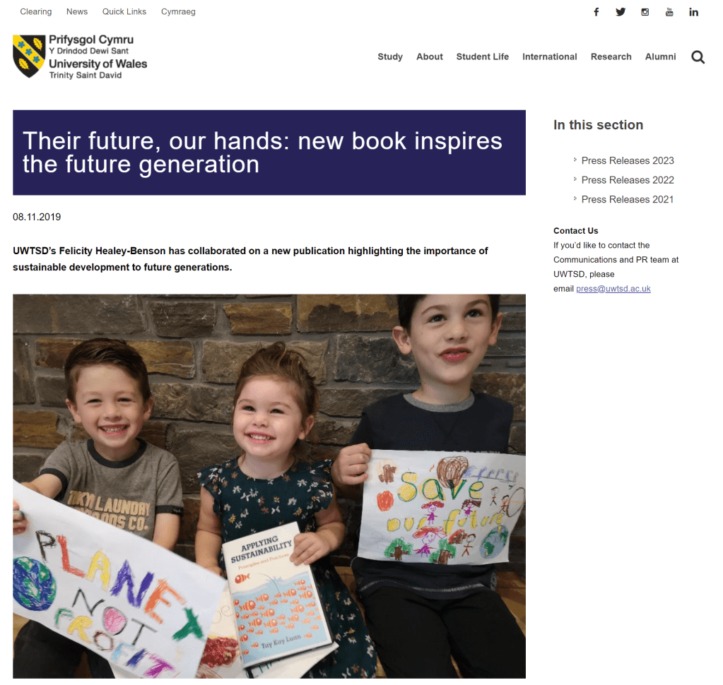 Archived UWTSD comms Their future, our hands: new book inspires the future generation