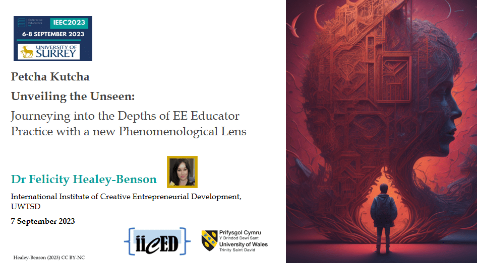 Healey-Benson, F. (2023). Unveiling the Unseen: Journeying into the Depths of Enterprise and Entrepreneurship Educator Practice with a new Phenomenological Lens. The 17th International Entrepreneurship Educators Conference (IEEC), University of Surrey, Surrey, 6-8th September 2023.
