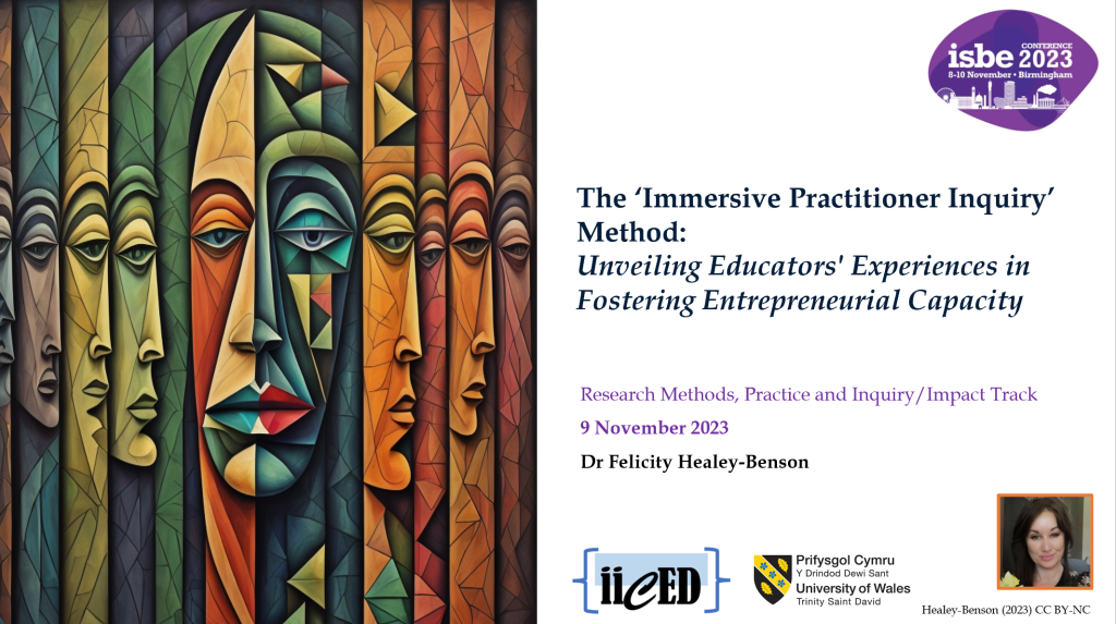 Healey-Benson, F. (2023). The ‘Immersive Practitioner Inquiry’ Method: Unveiling Educators’ Experiences in Fostering Entrepreneurial Capacity. ISBE 45th Annual Conference, Aston University, Birmingham, 8-10th November 2023